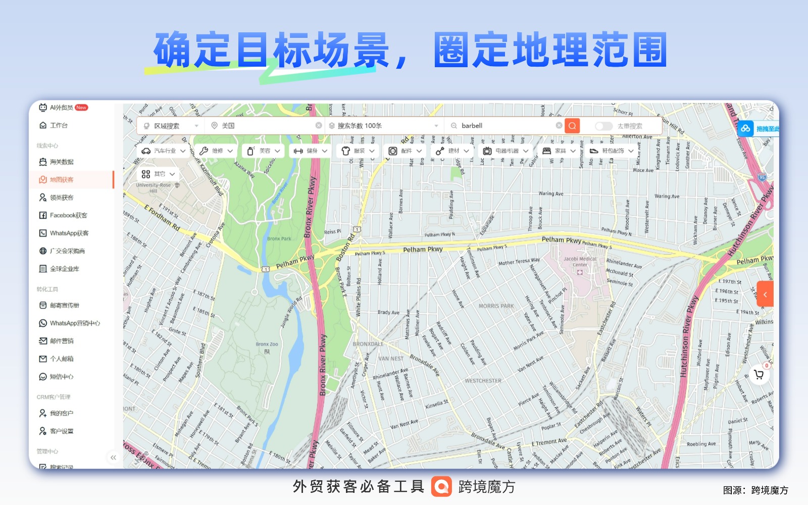 健身器材出口的找客难题,本质是 “精准定位难 + 需求匹配难” 的双重困境。想开拓欧美商用市场,如何快速锁定纽约、伦敦年采购量超千套的健身房连锁品牌或体育用品经销商?想深耕东南亚家用器材赛道,怎样触达曼谷、吉隆坡主营瑜伽垫、小型跑步机的大型批发市场买家?想挖掘中东高端市场,如何识别迪拜、沙特对智能健身镜、高端力量器械有采购需求的奢侈品商超或健身俱乐部?传统获客方式早已力不从心:广交会等展会单场成本超 25 万,80% 对接客户为小型零售商,与商用器材的批量采购需求不匹配;B2B 平台上健身器材供应商超 5 万家,同类跑步机竞价差达 40%,询盘转化率不足 6%;手动搜索仅能获取企业基础信息,无法知晓买家经营规模、线下门店分布、采购偏好,导致 90% 的开发精力浪费在无效客户上。对于健身器材外贸人而言,亟需一种能穿透信息壁垒、精准锁定高价值买家的工具 —— 跨境魔方地图获客功能,恰好能破解这一 “找客难、辨客准” 的核心痛点。