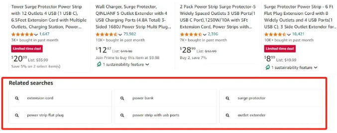 近日,亚马逊又在搜索栏和结果页引入了一项新功能:关联词推荐!