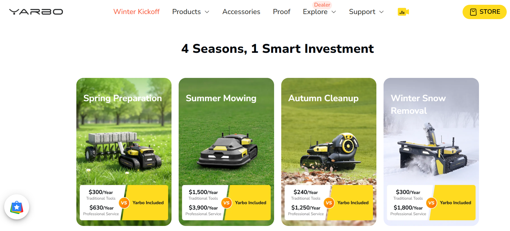 Yarbo庭院机器人支持扫雪、割草、吹落叶以及Smart Cover模块,由单一场景延展到庭院内的更多应用可能性,实现全年可用。同时,产品通过RTK-GPS厘米级定位技术和AI算法实现精准避障,配备零排放电机,契合海外环保理念。