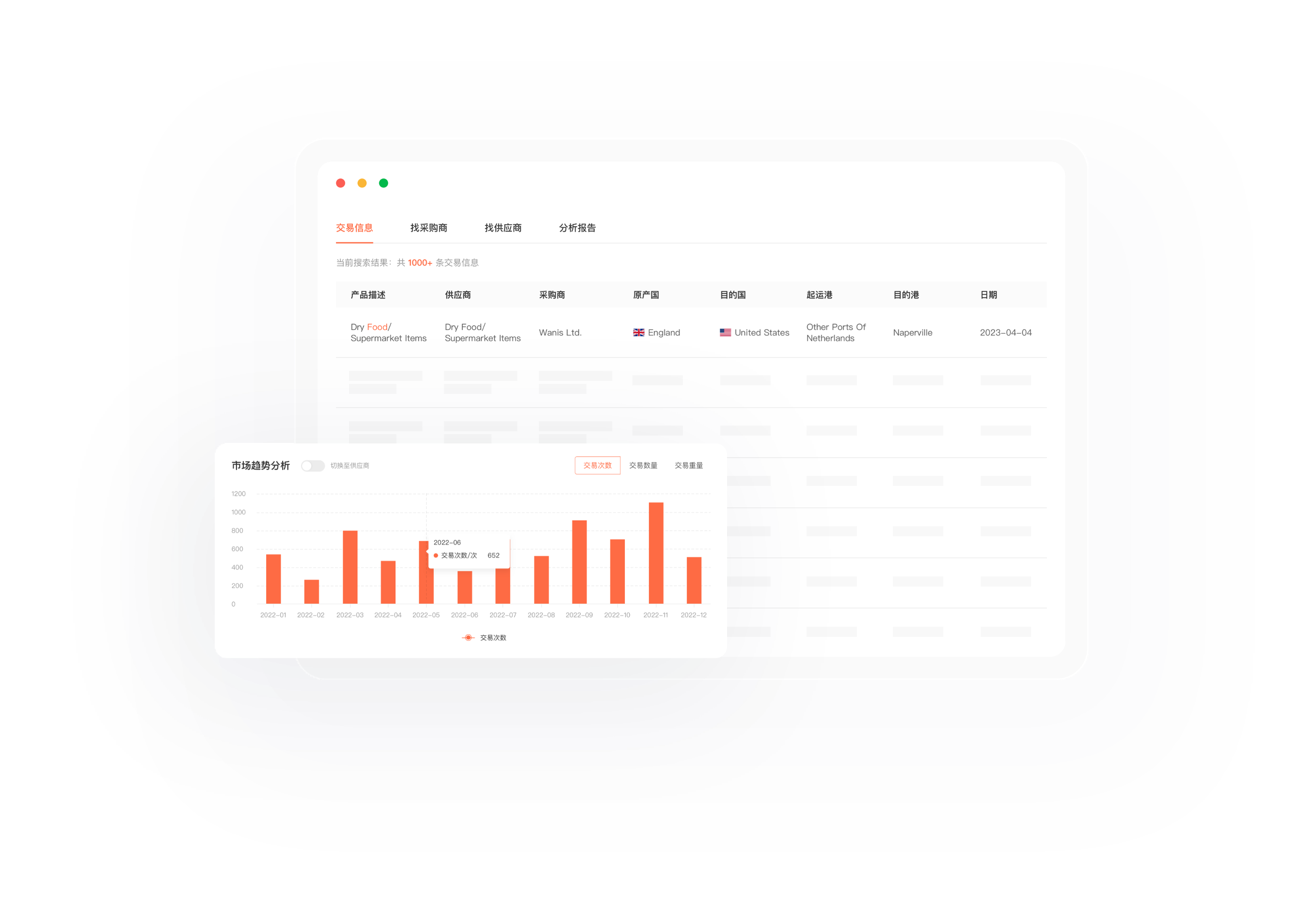 商品信息、交易重量、应有尽有,多重联系方式精准获客,助力业绩增长,采购商/供应商名称查询国家,港口等地域限制